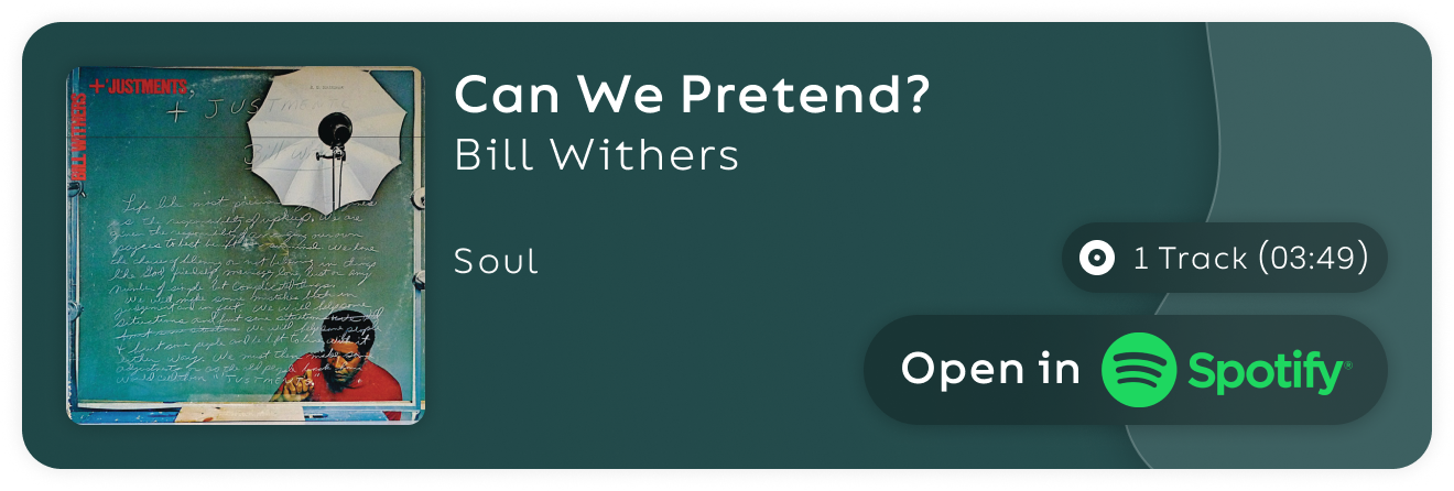 Bill Withers' famous divorce album +Justments is a haunting menagerie of heartbreak, tenderness, and naturally, regret. This week's Song to Study finds Bill lost in a daydream where he's fantasizing about his defunct relationship. In this daydream he seems to be conversing with his wife asking her if they could pick up where they left off, only under the condition that the past be forgotten.
